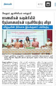 The programme concluded with a vote of thanks proposed by Mr. Nagarajan, Assistant Professor of Computer Applications. Ms. Sivaranjani, Head and Assistant Professor of Computer Applications, anchored the programme. The ceremony culminated with the College Anthem, symbolizing unity, camaraderie, and shared purpose among the students and faculty.