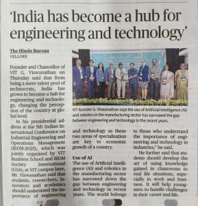 The 5th Indian International Conference on Industrial Engineering and Operations Management (IEOM-2025) was jointly organized by VIT Business School and IEOM Society International (USA) during November 6-8, 2025.