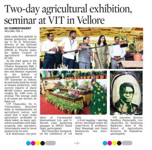 Dr. R. Selvarajan, Director, NRCB (ICAR), inaugurated the 8th Uzhavar Sangamam 2026, a two-day agricultural exhibition and seminar organized by the School of Agricultural Sciences, VIT University, Vellore.